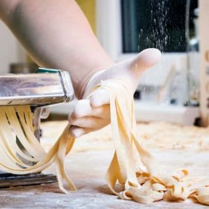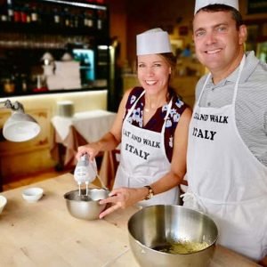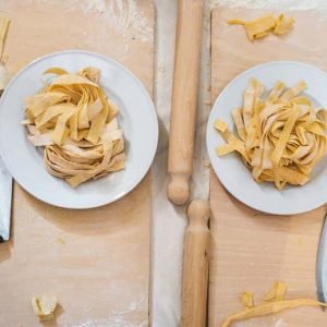 Enquanto o tiramisu esfria, aproveitamos para fazer massa fresca. Que lugar melhor do que Roma para fazer este prato? Quando terminarmos de trabalhar e cozinhar a massa, teremos apenas de escolher um molho para realçar seu sabor: carbonara, amatriciana, alfredo… Você vai decidir com que molho temperá-la!