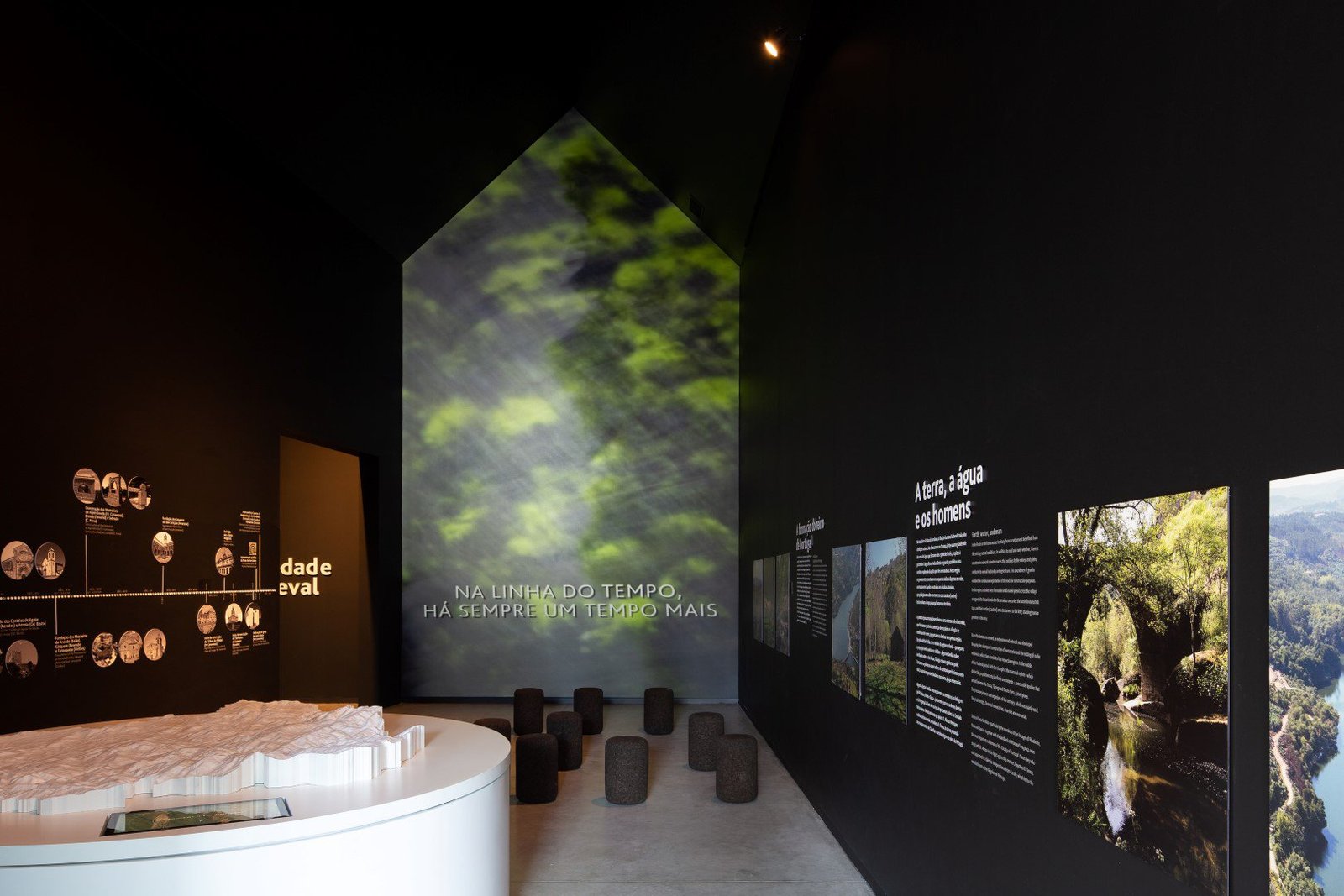 Além dos espaços de recepção, cafeteria e biblioteca, o CIR é composto por uma superfície expositiva de cerca de 650 metros quadrados , distribuída por um amplo átrio central e por seis salas temáticas : Território e Formação de Portugal; Sociedade Medieval ; O Românico; Os Construtores; Simbolismo e Cor ; Os Monumentos ao longo dos Tempos.