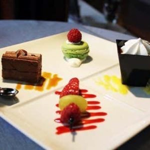 • Sobremesa : a ecolher entre uma opção de torta Saint Honoré com coulis de caramelo ou chocolate paixão Torre Eiffel.
