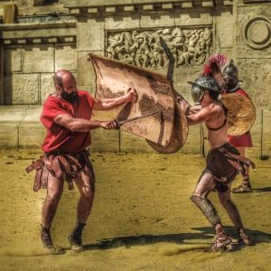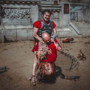 Neste emocionante espetáculo cheio de ação, paixão e efeitos especiais, você desfrutará de muitas surpresas: o desfile das legiões diante do imperador de Roma, uma corrida de quadrigas, uma batalha entre valentes gladiadores na arena de um anfiteatro…