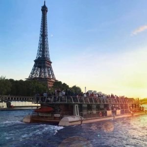 O passeio de barco começa aos pés da Torre Eiffel . Durante uma hora, navegaremos pelo rio Sena até a Ilha de Saint Louis , voltando ao ponto de partida no final do percurso.