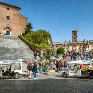 O percurso continuará pela Piazza Venezia. Também passaremos pela Fontana di Trevi, Piazza del Popolo, o bairro boêmio de Trastevere e o Gueto judeu.