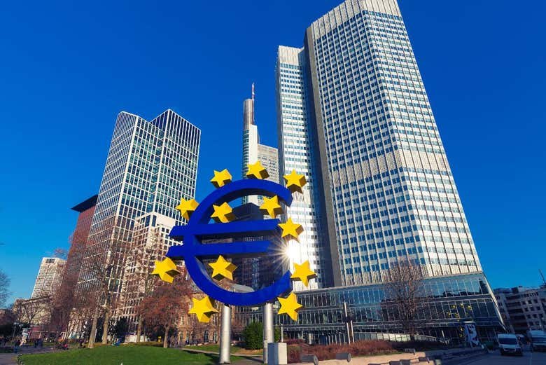 Se desejar, também podemos ir perto da sede do Banco Central Europeu. Na entrada principal, você poderá tirar uma foto com a famosa escultura do símbolo do euro que certamente terá visto nas notícias em mais de uma ocasião.