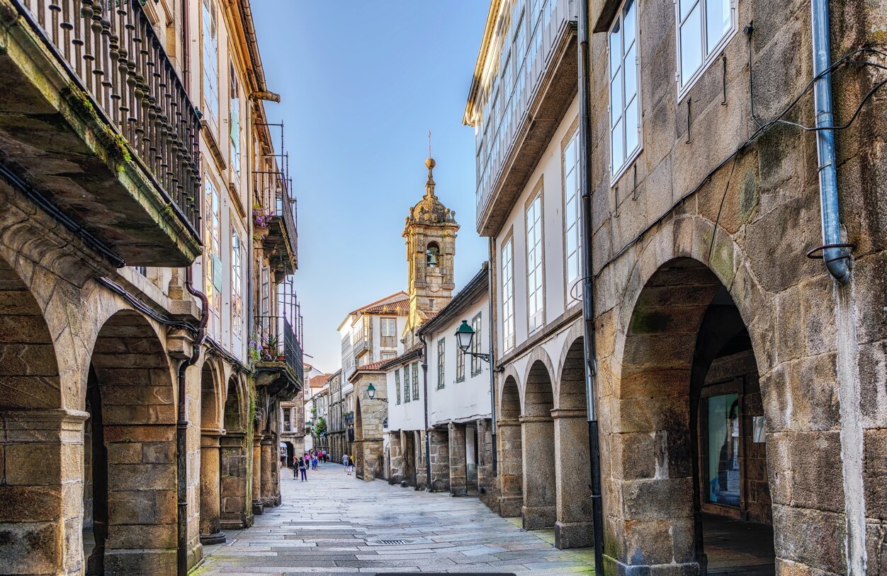 Explore as ruas de pedra do centro histórico, descubra praças encantadoras, lojas pitorescas e a arquitetura tradicional galega. A icónica Catedral de Santiago de Compostela, com a sua impressionante fachada e torres imponentes, é o coração e a alma da cidade.